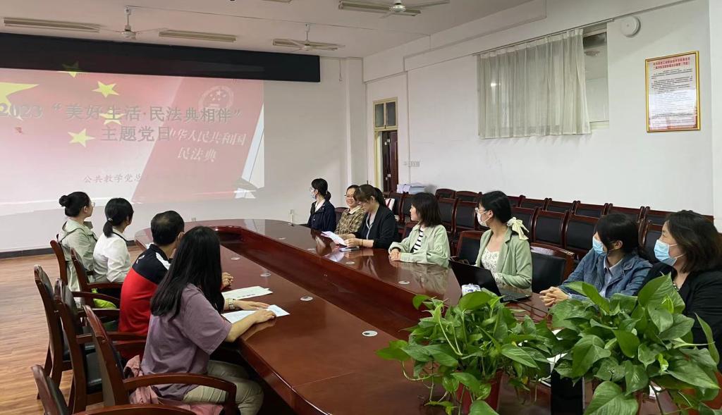 为全面贯彻落实党的二十大精神,深入学习习近平法治思想,5月31日,公共教学党总支第一党支部在崇文楼A501会议室开展“美好生活·民法典相伴”专题学习讨论活动,公共教学党总支副书记赵娇同志主持会议。