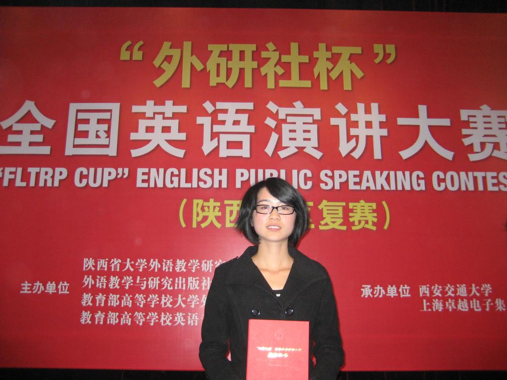 11月20日,由教育部高等学校大学外语教学指导委员会、教育部高等学校英语专业教学指导分委员会和外语教学与研究出版社主办,西安交通大学承办的2010“外研社杯”全国英语演讲大赛—陕西赛区复赛在西安交通大学逸夫科学馆国际会议中心举行。我院代表队获得陕西赛区复赛三等奖。