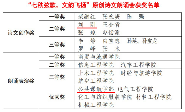 经过前期的认真策划和精心排练,公共教学党总支第一支部书记、语文教研室主任刘刚老师的原创作品《划向大海的舢板》获诗文创作奖二等奖,由公共课教学部赵金柱、刘姗姗、田恬、韩畅、庞博予、张亦炫、李冬瑞组成的朗诵团队获优秀奖。