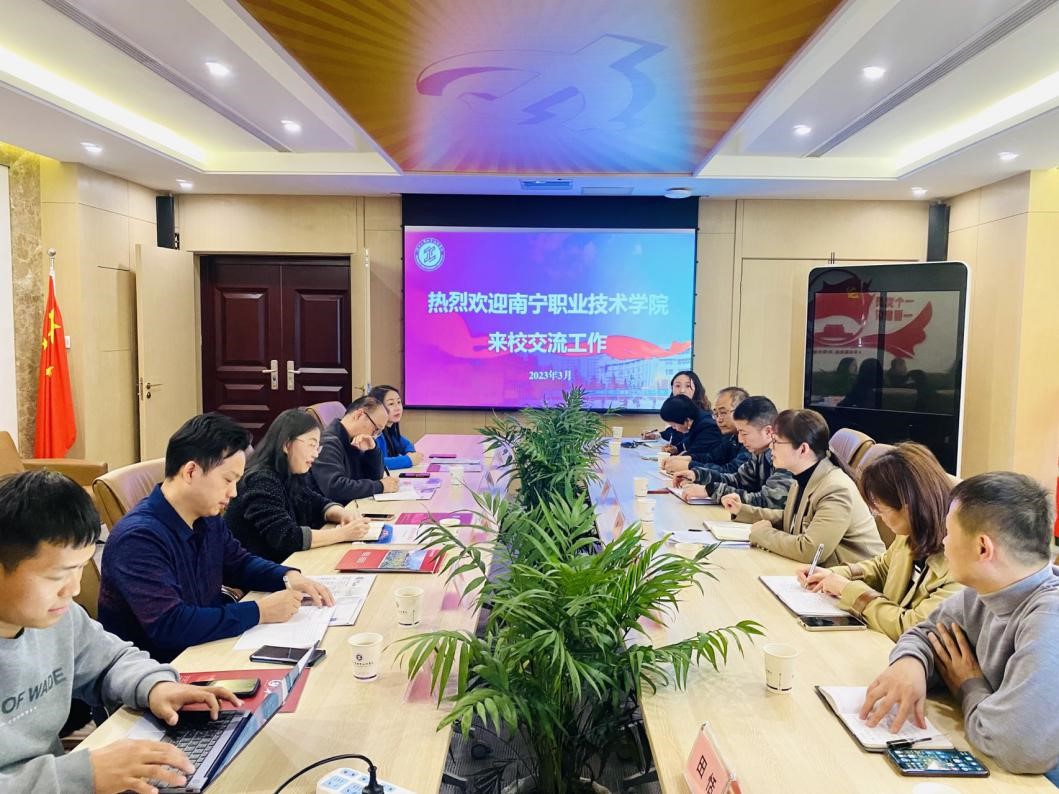 赵娇副部长对陈秀泉院长一行的到来表示热烈欢迎,在观看完学院宣传片后,简要介绍了公共课教学部的基本情况。陈秀泉院长说明来访目的及学习交流主题,介绍了南宁职业技术学院人文教育学院的发展现状,并希望借鉴公共课教学部在基础课教学中的成熟经验和做法、更好地助力南宁职业技术学院公共基础课教学。赵娇副部长、杨帆主任、毛建芳主任及各教研室主任分别从师资队伍建设、课程标准等方面进行了解读。随后,双方结合实际情况就课程设置、教学改革、教学比赛、技能大赛等方面进行了热烈讨论,同时也对教学中出现的问题提出了建设性的意见和建议。会后,陈秀泉院长一行参观了材料成型5G实训基地、机加工实训中心、学院羽毛球馆等教学场所。
