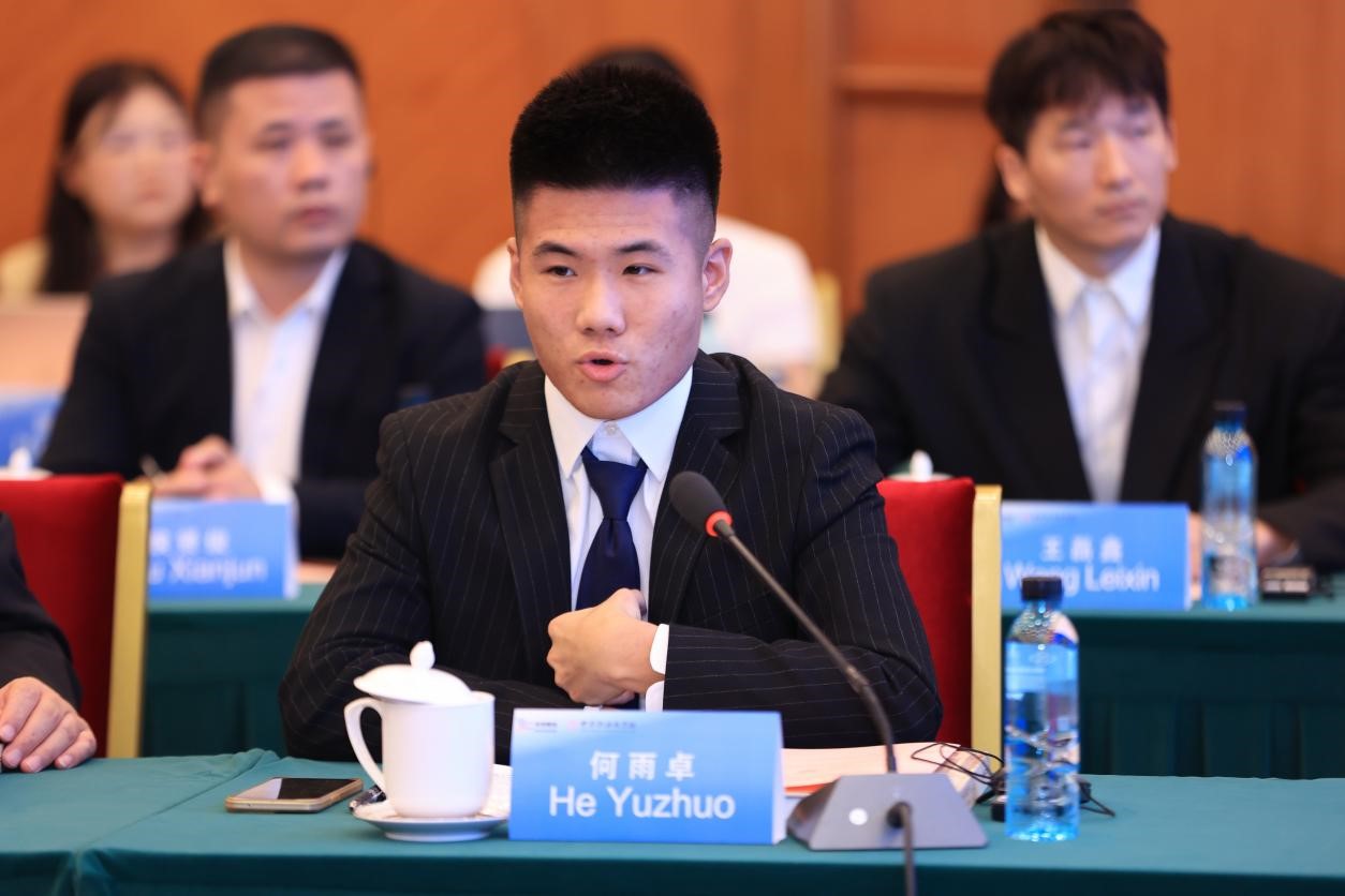 何雨卓同学从自身经历出发,以“劳动光荣、技能宝贵、创造伟大”为主题,分享了“大国工匠”何小虎对他的激励和影响,谈到作为新时代青年学生,肩负着前所未有的使命和责任。并谈到学校中所学到的技能,不仅是个人成长的阶梯,更是推动国家进步、实现中国式现代化的重要力量,希望与世界各国青年学生一起苦练技能、争创一流,为全球可持续发展贡献力量!何雨卓同学流利的英文演讲引发了国家驻华使馆大使参赞、国外职教机构、鲁班工坊共建院校代表等与会嘉宾的热烈掌声。