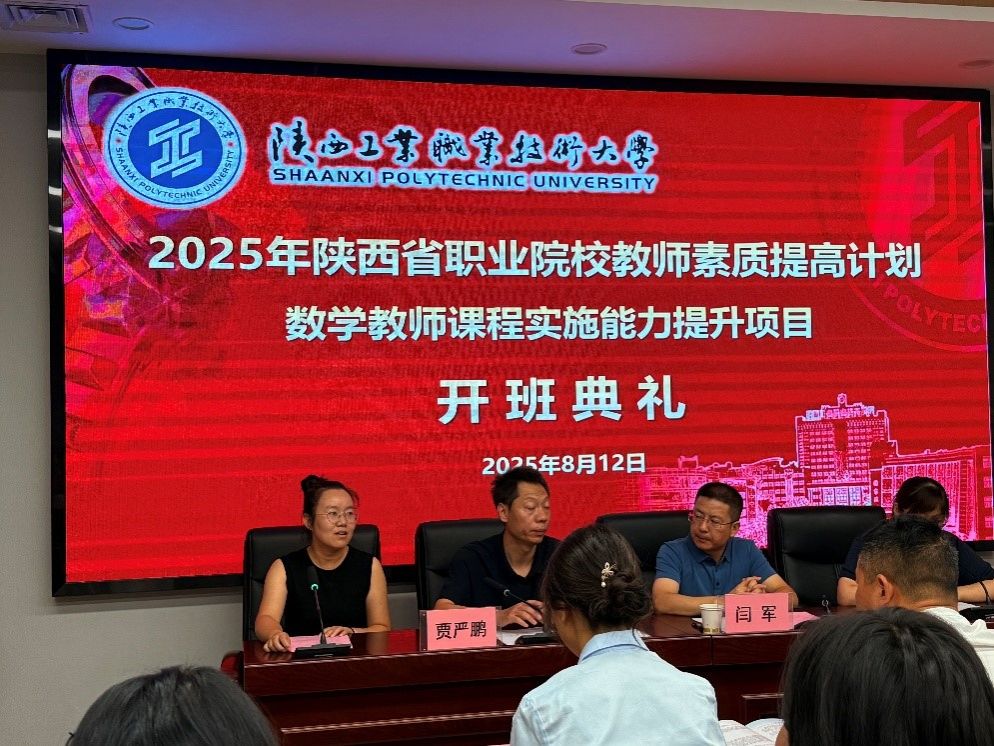 开班仪式上,首先,继续教育与培训学院院长闫军对参训学员表示欢迎并介绍了学校在教育教学、社会服务等方面的基本情况。随后,公共课教学部部长赵娇从培训目标、培训内容及安排、考核形式等方面详细介绍了培训方案,并提出了培训纪律要求。陕西工业职业技术大学田恬作为授课教师代表发言,陕西交通职业技术学院牛曦辰作为学员代表发言。最后,继续教育与培训学院副院长贾严鹏表示,将认真组织、严格管理、做好服务,保障培训质量,推动职业院校数学教师课程实施能力提升。