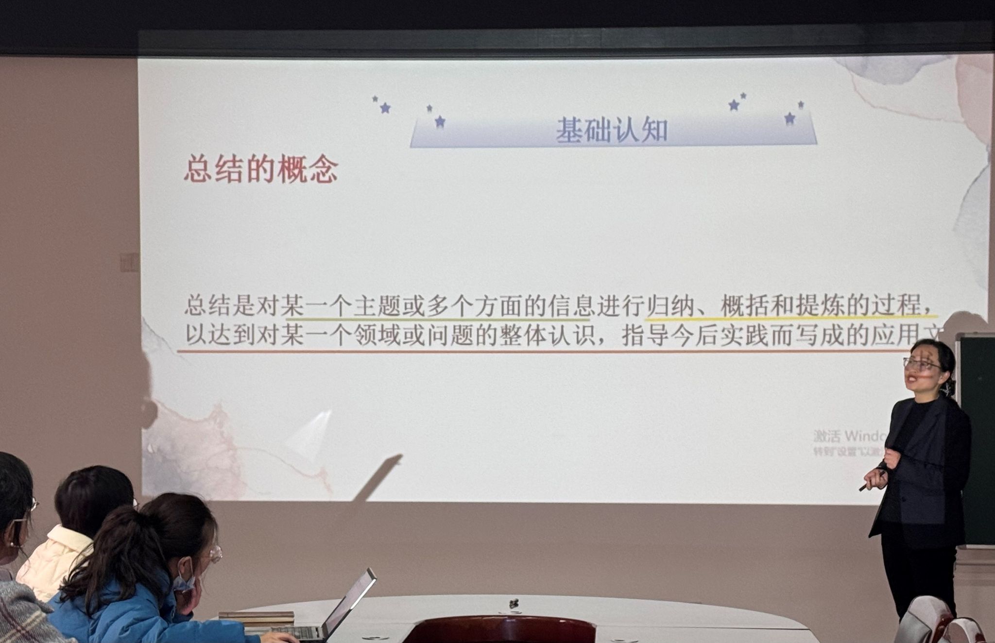 活动特邀英语教研室花丹副教授、语文教研室杨玲玲副教授以及数学教研室高汝林副教授进行示范课展示。三位教师分别围绕《如何介绍产品》《总结的写作》和《导数的应用》展开教学,从不同学科角度呈现了生动而富有深度的课堂实况,充分展现了扎实的教学功底与清晰的教学思路,为在场教师提供了宝贵的学习与借鉴范例。