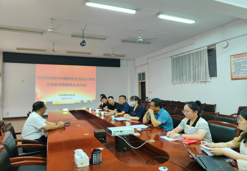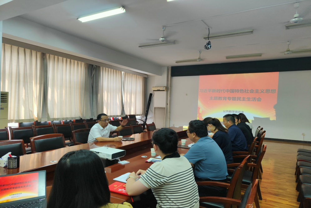 9月4日下午,公共教学党总支在崇文主楼501会议室召开了学习贯彻习近平新时代中国特色社会主义思想主题教育。学校党委副书记、纪委书记康强同志到会督导,公共教学党总支班子成员、党支部书记共8人参会。会议由党总支副书记赵娇主持。