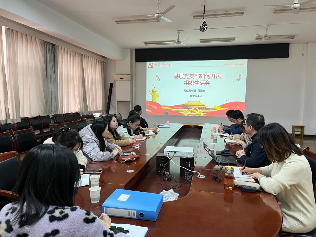 会上,党总支书记苏宏志组织大家再次集中学习了“第一议题”制度,强调实施“第一议题”制度,是持续加强党的政治建设、提高政治站位和政治能力、强化党员思想教育的重要抓手,是切实发挥党组织的领导作用的重要手段,要求各支部高度重视落实 “第一议题”制度化、常态化、规范化、实效化。随后,针对2023年度四个支部在基层党建考核中存在的问题,以“筑牢党务工作基础,提升党建工作能力”为题,围绕党支部“三会一课”、主题党日、党员教育管理、支部手册规范记录等专题进行了详细讲解,并要求各支部充分调研讨论,以争创样板支部、特色主题党日为目标制定本年度党建工作计划。