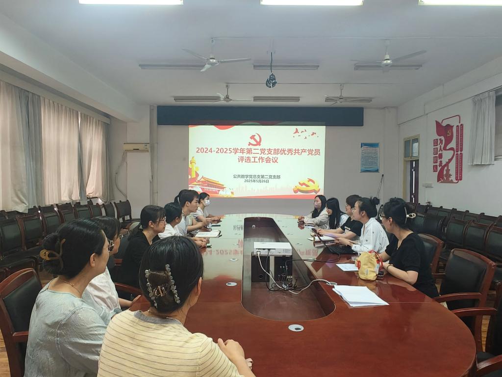 2025年5月26日下午,公共教学党总支第二党支部召开2024-2025学年优秀共产党员评选工作会议,并开展"贯彻中央八项规定精神,争做新时代先锋党员"主题党课学习。会议由支部书记张亦炫主持,第二党支部全体党员参加。