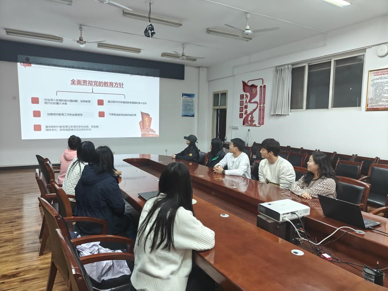 其次,李亚琪同学领学了习近平总书记在全国教育大会上的重要讲话精神,并指出学习贯彻习近平总书记在教育大会上的重要讲话精神,是当前和今后一个时期重大的政治任务。作为党员教师更要切实扛起政治责任,迅速行动起来,把思想和行动统一到习近平总书记重要讲话精神和党中央决策部署上来,紧紧围绕立德树人根本任务,以教育家精神为指引,励精图治,不断探索实践,朝着建成教育强国战略目标扎实迈进。